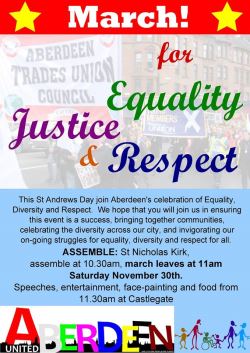 Come along to the St Andrews Day March and Rally for Equality, Justice and Respect